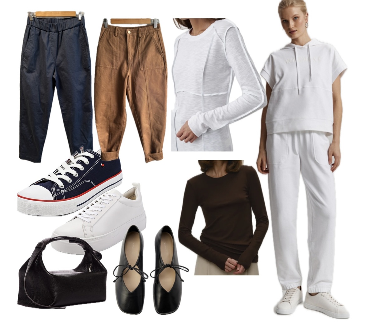Добрый день! Половина лета прошла, я решила задуматься о гардеробе на осень 2025. В Москве осень обычно довольно мягкая, температура снижается постепенно от 25 до 0 градусов, поэтому и капсул у меня будет 3 на условные температурные диапазоны: сентябрь 25-15, октябрь 15-7, ноябрь 7-0 градусов. Прежде чем начинать планирование гардероба необходимо определиться с местами посещений. Я работаю из дома с редкими выездами в офис. Остальное время гуляем с семьей или занимаюсь повседневными делами. То есть более строгой одежды мне нужен минимум, а повседневных комплектов больше. Давайте посмотрим пример моей капсулы на сентябрь 2025 г. Капсулы я формирую строго из своих вещей. Как видите, все элементы одежды отвечают моему запросу. Здесь нет дождевика, но у меня нет острой необходимости выходить куда-то в дождь. Теперь давайте посмотрим комплекты. Кое-что я объединила (низ и несколько верхов), чтобы не было много картинок. Таким образом, капсула состоит из 10 вещей (без обуви и сумки)
