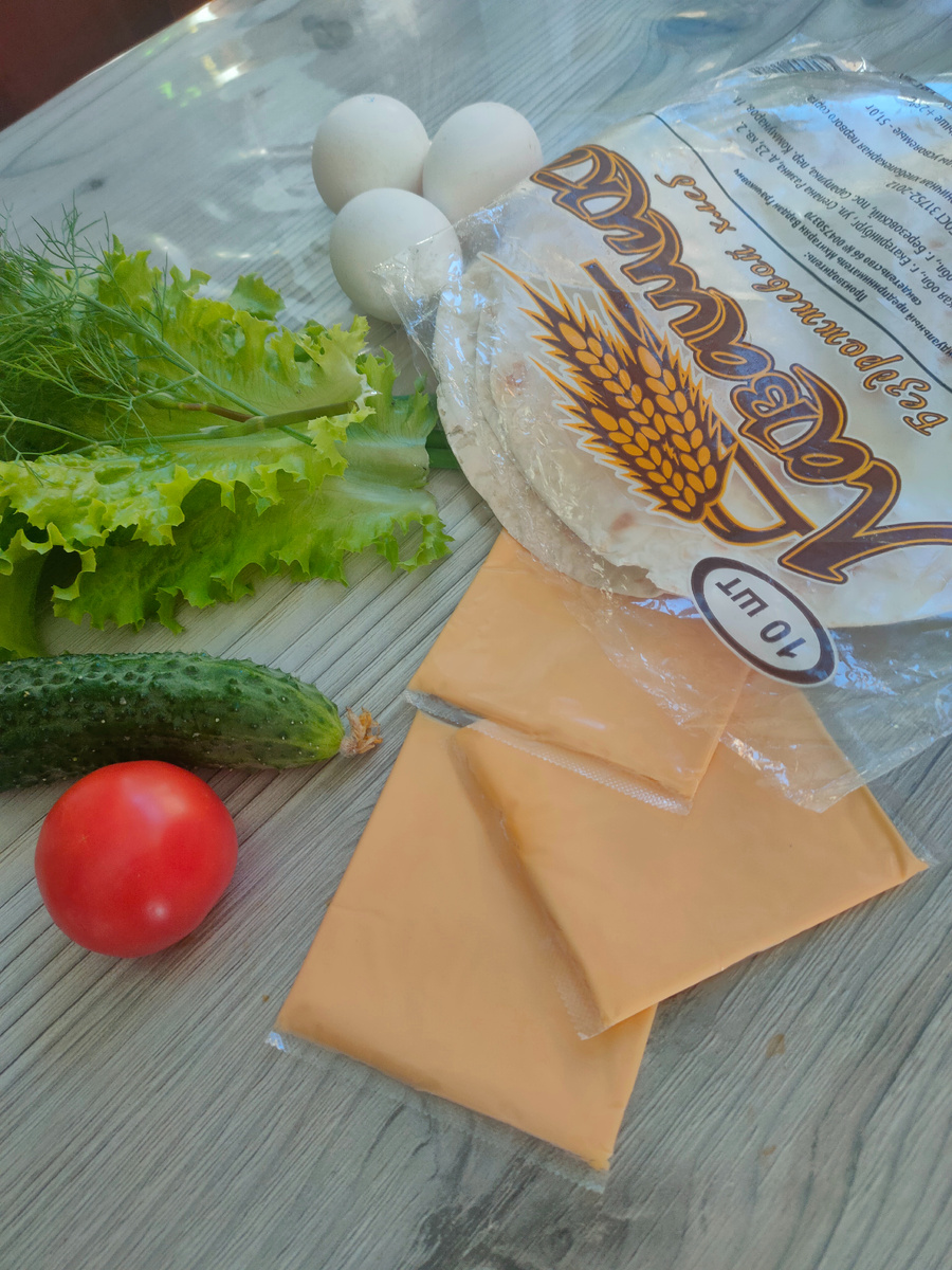 Добрый день, мои подписчики и гости моего канала. Пусть этот день будет хорошим, на предыдущий не похожим. И пусть начнется полоса удачных дней, любви, добра! Я рада вас видеть на своем канале, где я показываю меню на день. Утро сегодня такое солнечное. Открыла глаза, на часах еще начало восьмого, а я уже выспалась, что со мной редко такое случается, чтобы я в выходной день встала почти в 7 часов. Внук еще спит. Буду готовить завтрак для нас с мужем. Сходила в огород, нарвала свежей зелени, огурцов. Вот из этого набора и будет наш завтрак. Люблю такие завтраки из лаваша, быстро, сытно и вкусно. Дополнила листьями зеленого салата, свежим огурцом и дольками помидора. все присыпала белым кунжутом. А также сварила в турке черный натуральный кофе. Кофе пила с печеньем сэндвич и конфетами. Мы уже позавтракали, когда проснулся Арсений. Показала ему фото завтрака, сказал, что такой лаваш он не любит. Попросил сделать кусочки с яйцом. Вот так я их делала: порезала батон на кубики, обжарила с