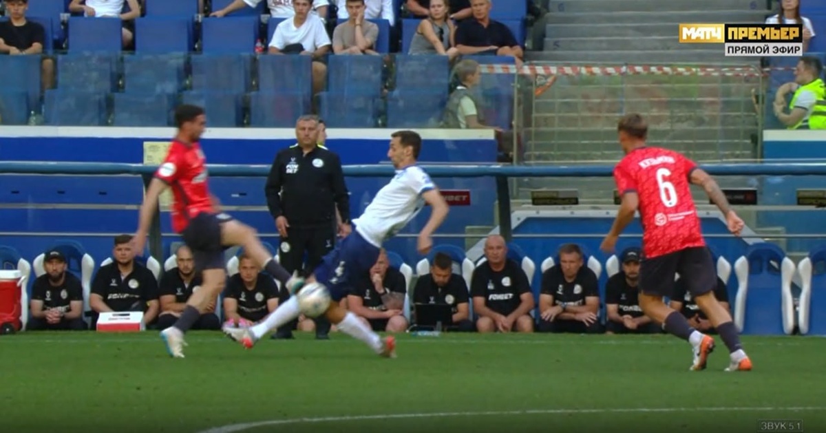 Акрон-Крылья Советов 87 мин. НА стоп кадре это К.К за серьёзное нарушение правил для игрока команды Акрон №17, в динамике Ж.К за грубую игру, но нечего не показать в этом моменте нельзя.
