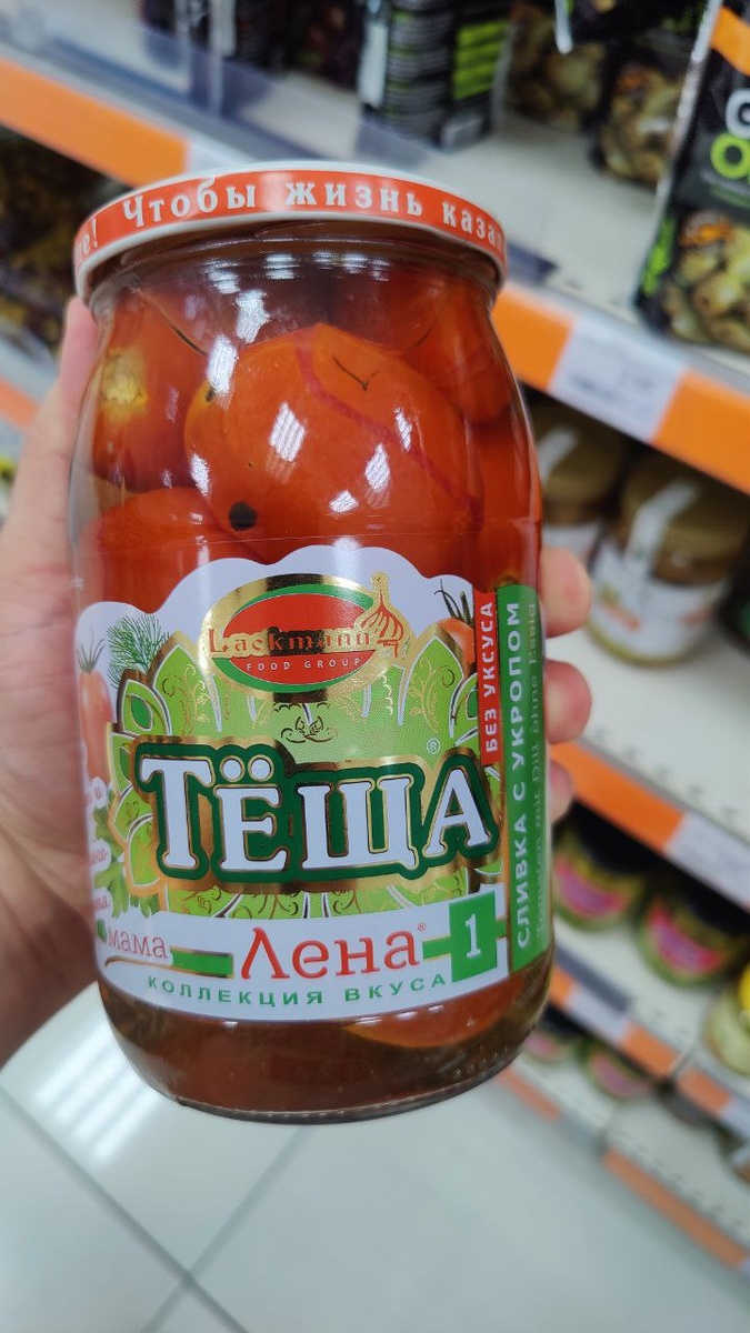 #ПростоТак: Собери их всех Вот такие соленья я обнаружил в магазине одного заграничного городка. Простите за очевидную и душную шутку, но я уже не могу её не пошутить. Надпись «Коллекция вкуса „Лена“» толсто намекает, что где-то в самом дальнем углу спряталась банка со Светой, Татьяной и, может быть, даже Олегом! Но главное — без уксуса. Он только испортит весь вкус.