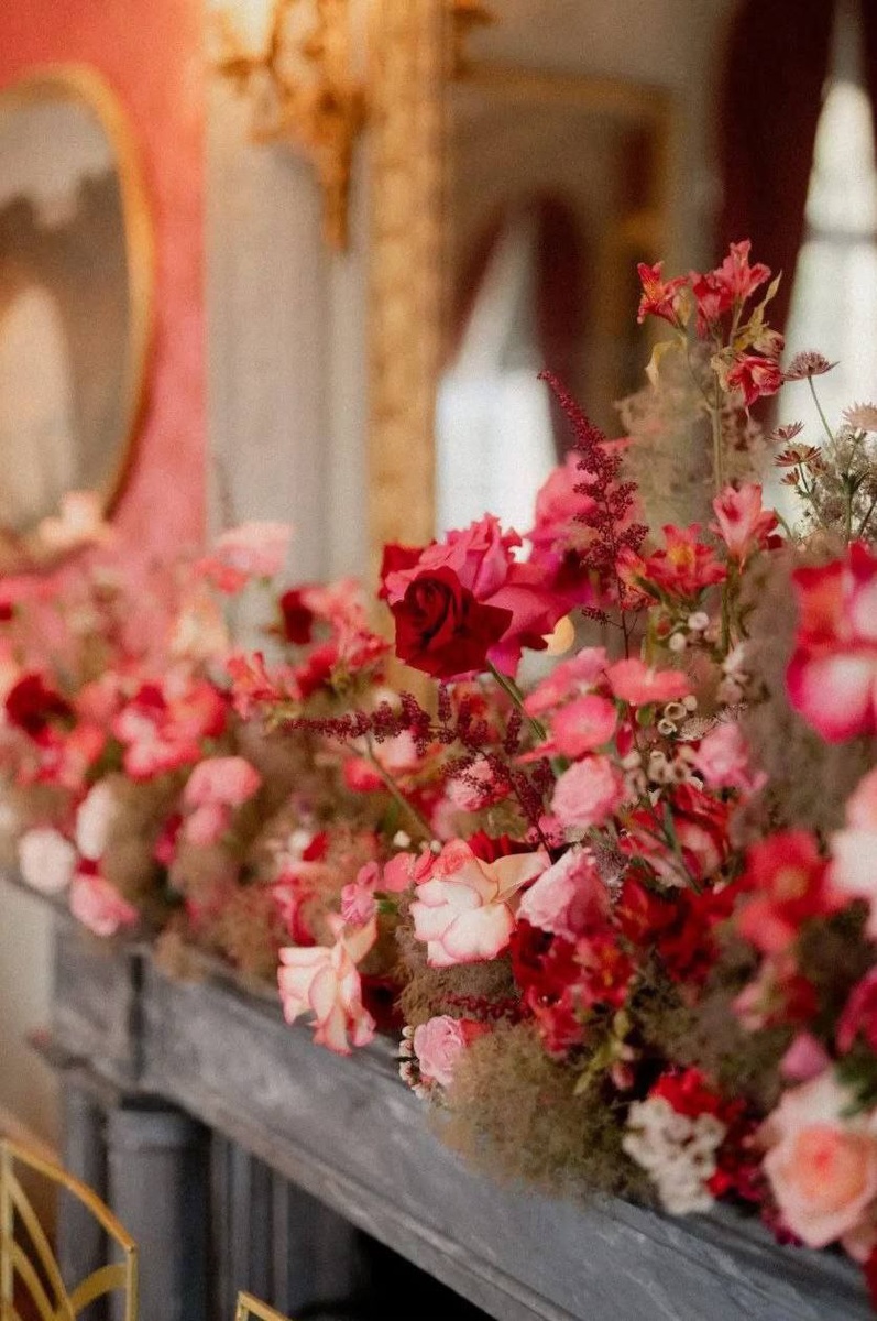 Роскошная цветочная композиция для свадебного декора камина Идеальным украшением свадебного зала станет пышная композиция на камин, выполненная в романтичной гамме из алых и розовых роз и красной альстромерии, дополненная сезонными цветами. Такой декор создаст атмосферу уюта, элегантности и праздника, подчеркнув торжественность момента. Состав композиции: - Красные розы – символ страсти и вечной любви. - Розовые розы – нежность и романтика. - Альстромерия – добавляет объем и долго сохраняет свежесть. - Сезонные цветы – придают композиции легкость и натуральность. - Зелень – для объема и естественности. Форма и оформление: Композиция может быть выполнена в виде асимметричного каскада или плотного букета в вазе/подсвечнике, дополненного свечами, лепестками или декоративными элементами (ленты, кристаллы). 💐 Уточняйте наличие цветов заранее, особенно если свадьба в сезон высокого спроса (май-сентябрь). Такой декор станет изюминкой вашего праздника и прекрасным фоном для фотографий! ?