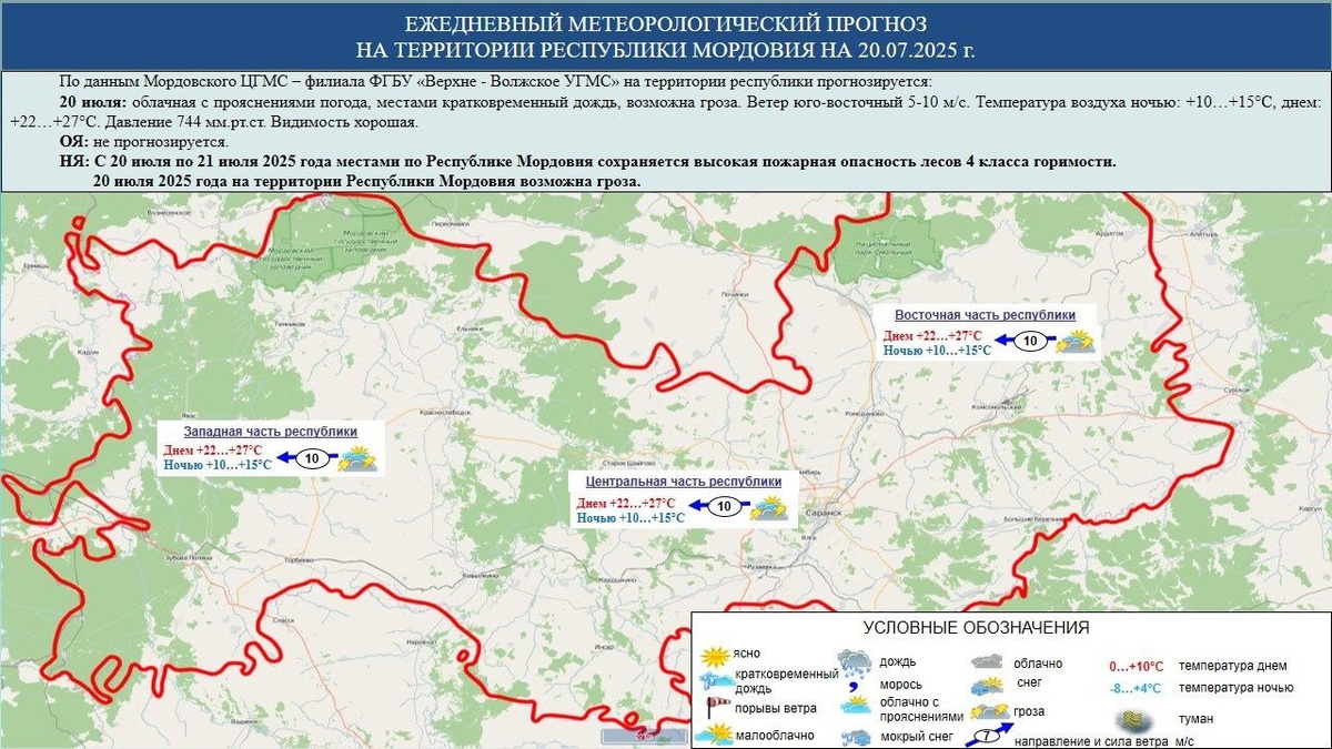 ☁️⛅⛈️ 20 июля в Мордовии облачная с прояснениями погода, местами кратковременный дождь, возможна гроза. Ветер юго-восточный 5-10 м/с. Температура воздуха ночью: +10…+15°C, днем: +22…+27°C. Давление 744 мм рт. ст. Происшествия | Подписаться | Предложить новость