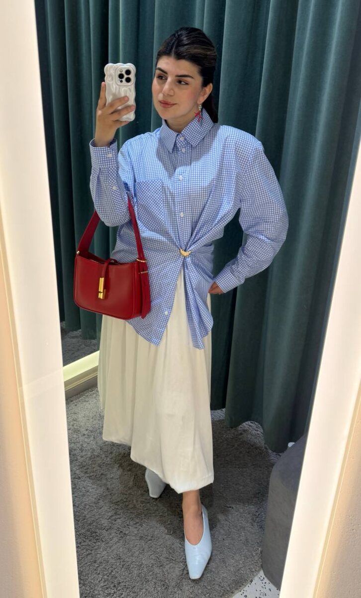 Продолжая тему про голубой цвет) Сейчас я пока в голубой рубашке Chaika почти постоянно хожу, сегодня тоже, потому что она легкая в жару и не просвечивает корсет 😅 Но вообще очень люблю добавлять голубой в образы, особенно летом, всегда так свежо смотрится 🩵