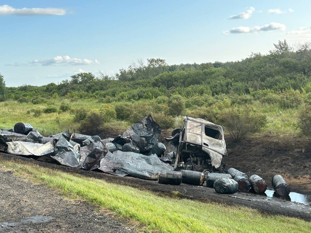 Фото с места смертельной аварии с участием фур на трассе Тюмень-Омск.