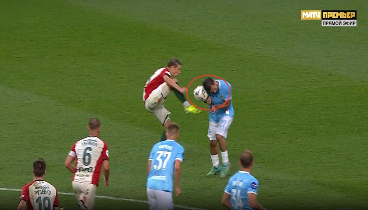 Локомотив-Сочи 90+3 Правильное решение принимает ВАР в лице Сухого и отменяет гол в ворота команды Локомотив. Игрок команды Сочи после попадания мяча в руку прямым ударом забивает гол. Правильное решение: Отмена гола в ворота команды Локомотив и назначения штрафного удара за игру рукой