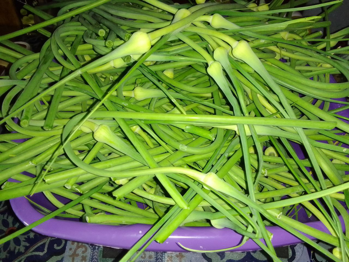 Получилось не так и много - всего 2 штуки. Это потому что половиной стрелок с соседкой поделилась. Будет деревенское песто и у нее, и у меня)