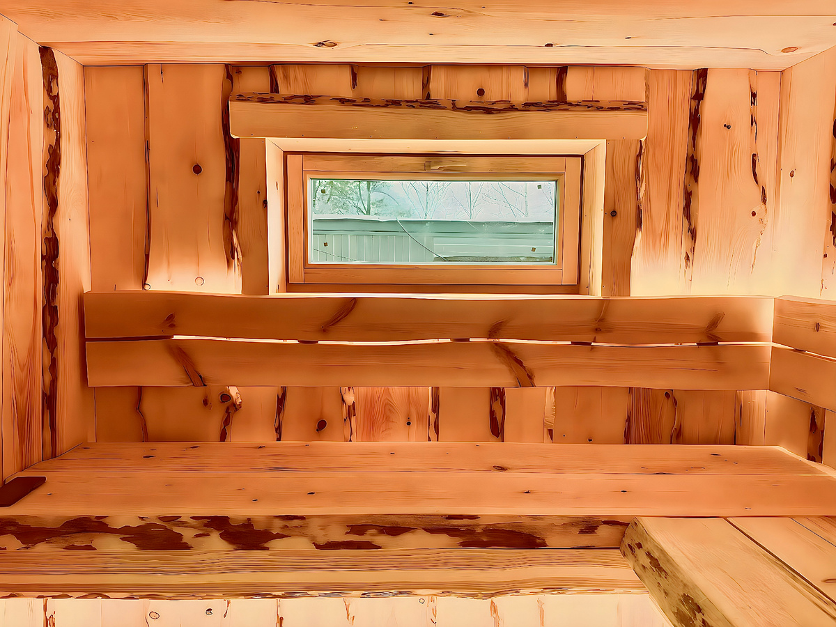 Натральные мтариалы в интерьере сауны.