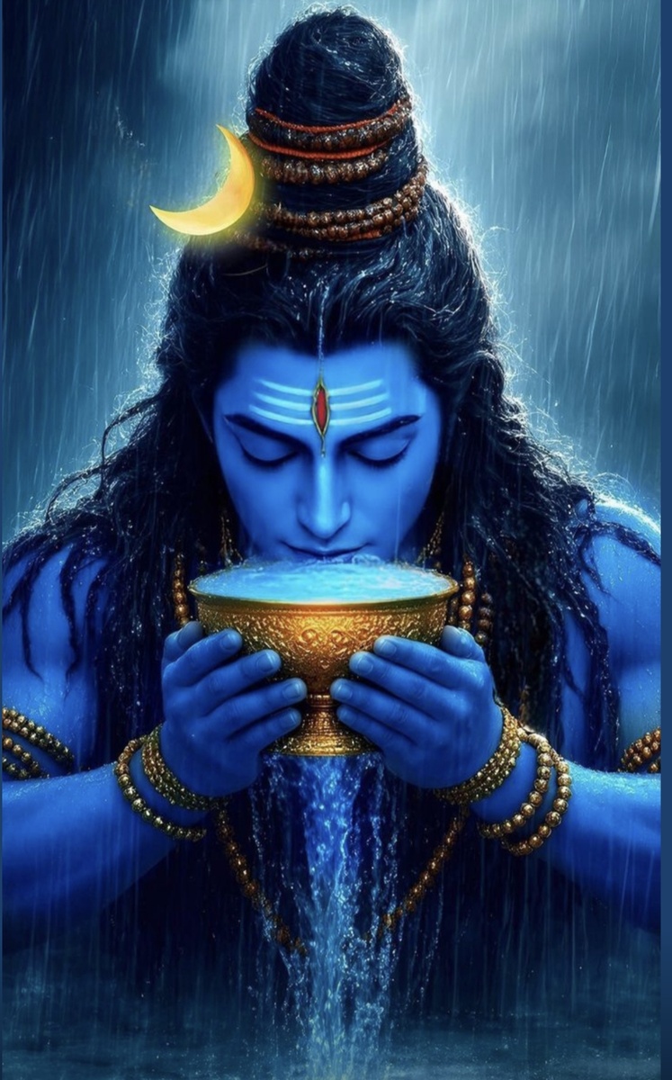 История, которая переворачивает представление о добре и зле. Когда боги и демоны взялись за одно дело — пахтание Молочного океана (Самудра Мантхан), из пучины вселенной начали появляться дары. Сияющая богиня Лакшми, волшебная корова Камадхену, слоны Из дры Айрвата и наконец — Амрита, нектар бессмертия. Но перед этим из вод океана вышло нечто ужасающее — яд Халахала, настолько разрушительный, что его пары могли погубить всю Вселенную. Он не борется за нектар. Он не требует амриту для себя. Он вбирает яд в горло, чтобы никто другой не пострадал. И этот момент — поворотный в индийской космогонии. «Когда появился ужасный яд, боги испугались и обратились к Шиве. И он, бесстрашный, принял его в себя ради блага всех миров». — Бхагавата Пурана, 8.7 Потому что он — Ашутоша, тот, кого легко умилостивить, но кто не цепляется за желания. Потому что он — Маха-йогин, который может контролировать внутренний огонь и трансформировать даже яд. Потому что он — разрушитель эго, способный принять боль, ст