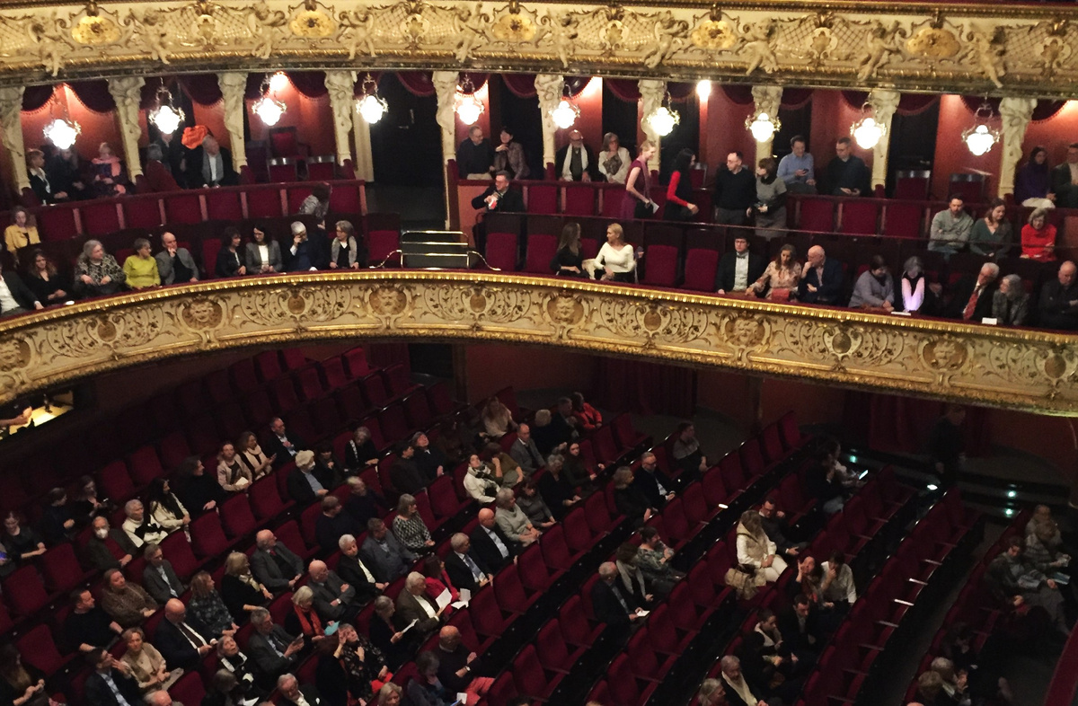 Люди на оперу пришли наряженные, настроение было, как это обычно и бывает, торжественно-приподнятое. Отдельные гости, что приехали заранее, ожидая, пока начнут запускать в зал, даже выпили по бокальчику шампанского.