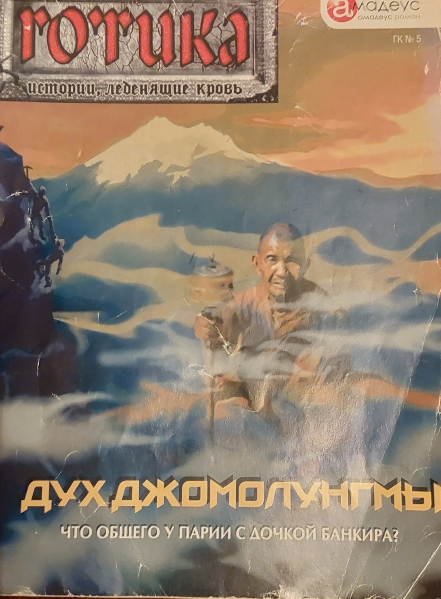 Несколько лет назад в газетных киосках нашего города моё внимание привлёк "Литературный журнал", учредителем которого было "Издательство Амадеус". В каждом его номере читателя ждали интригующие и увлекательные истории, выпущенные в самых разнообразных сериях:"Виражи любви", "Дыхание страсти", "Дорога домой", "Готика", "По ту сторону" и т.д. Несколько таких серий и я приобрела домой и тут же бросилась за их чтение. Благодаря удобному формату, что позволяло их взять с собой в путешествие, крупному шрифту и небольшому объему читались они довольно быстро. К тому же сюжеты были довольно динамичными и увлекательными, так что я осталась очень довольна. Перебирая недавно свои журналы и книги на полках, случайно наткнулась на книжку из серии "Готика", про которую я уже давно благополучно забыла. Это оказалось произведение Д. Гарднер "Дух Джомолунгмы". Долго гадала и размышляла над тем, стоит ли читать его до запланированного вскоре нами загадочного и дальнего путешествия, полного тайн и за