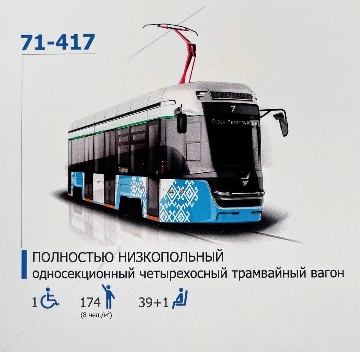 «Уралтрансмаш» на выставке Иннопром-2025 показал рендер трамвая с индексом 71-417. Односекционный полностью низкопольный трамвай представляет собой дальнейшее развитие модели 71-415. Новинка получит обновленный дизайн и увеличенное количество посадочных мест.