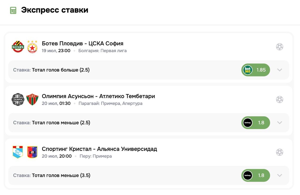 π¨ ΠΠΊΡΠΏΡΠ΅ΡΡ ΡΡΠ°Π²ΠΊΠΈ ΠΊΠ°ΠΆΠ΄ΡΠΉ Π΄Π΅Π½Ρ Π½Π° Π½Π°ΡΠ΅ΠΌ ΡΠ°ΠΉΡΠ΅! ΠΡΠ΅ΡΠ΅ Π²ΡΠ³ΠΎΠ΄Π½ΡΠ΅ ΠΏΡΠΎΠ³Π½ΠΎΠ·Ρ ΠΈ ΡΡΠΊΠΈΠ΅ ΡΡΠ°Π²ΠΊΠΈ? π₯ ΠΡ ΠΏΡΠ΅Π΄Π»Π°Π³Π°Π΅ΠΌ Π²Π°ΠΌ ΡΠΊΡΠΏΡΠ΅ΡΡ ΡΡΠ°Π²ΠΊΠΈ Ρ Π°ΠΊΡΡΠ°Π»ΡΠ½ΡΠΌΠΈ ΡΠΎΠ±ΡΡΠΈΡΠΌΠΈ ΠΊΠ°ΠΆΠ΄ΡΠΉ Π΄Π΅Π½Ρ! β‘ β½ ΠΠΎΡΠ΅Π² ΠΠ»ΠΎΠ²Π΄ΠΈΠ² - Π¦Π‘ΠΠ Π‘ΠΎΡΠΈΡ πΉ 19 ΠΈΡΠ»Ρ, 23:00 πΉ ΠΠΎΠ»Π³Π°ΡΠΈΡ: ΠΠ΅ΡΠ²Π°Ρ Π»ΠΈΠ³Π° πΉ Π‘ΡΠ°Π²ΠΊΠ°: Π’ΠΎΡΠ°Π» Π³ΠΎΠ»ΠΎΠ² Π±ΠΎΠ»ΡΡΠ΅ (2.5) πΉ ΠΠΎΡΡΡΠΈΡΠΈΠ΅Π½Ρ: 1.85 β½ ΠΠ»ΠΈΠΌΠΏΠΈΡ ΠΡΡΠ½ΡΡΠΎΠ½ - ΠΡΠ»Π΅ΡΠΈΠΊΠΎ Π’Π΅ΠΌΠ±Π΅ΡΠ°ΡΠΈ πΉ 20 ΠΈΡΠ»Ρ, 01:30 πΉ ΠΠ°ΡΠ°Π³Π²Π°ΠΉ: ΠΡΠΈΠΌΠ΅ΡΠ°, ΠΠΏΠ΅ΡΡΡΡΠ° πΉ Π‘ΡΠ°Π²ΠΊΠ°: Π’ΠΎΡΠ°Π» Π³ΠΎΠ»ΠΎΠ² ΠΌΠ΅Π½ΡΡΠ΅ (2.5) πΉ ΠΠΎΡΡΡΠΈΡΠΈΠ΅Π½Ρ: 1.8 β½ Π‘ΠΏΠΎΡΡΠΈΠ½Π³ ΠΡΠΈΡΡΠ°Π» - ΠΠ»ΡΡΠ½ΡΠ° Π£Π½ΠΈΠ²Π΅ΡΡΠΈΠ΄Π°Π΄ πΉ 20 ΠΈΡΠ»Ρ, 20:00 πΉ ΠΠ΅ΡΡ: ΠΡΠΈΠΌΠ΅ΡΠ° πΉ Π‘ΡΠ°Π²ΠΊΠ°: Π’ΠΎΡΠ°Π» Π³ΠΎΠ»ΠΎΠ² ΠΌΠ΅Π½ΡΡΠ΅ (3.5) πΉ ΠΠΎΡΡΡΠΈΡΠΈΠ΅Π½Ρ: 1.8 π ΠΠ΅ΡΠΏΠ»Π°ΡΠ½ΡΠΉ Π€ΡΠΈΠ±Π΅Ρ: https://l.scores24.live/Scores24RuTG