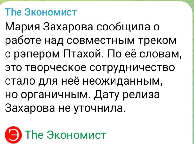 В данной новости, ну исходя из элементарной логики, можно понять одно. Для мадам из нашего МИДа либо кровопролитной войны нет, либо она сознательно "сливается". Мы же понимаем, что для личного пиара время выбрано не удачно. И Захарова это понимает, она тётка далеко не глупая. Есть вариант, что это домашняя заготовка для демонстрации полного контроля над ситуацией, но на ум почему-то приходит её танец "Калинка-малинка". Она сливается, факт.