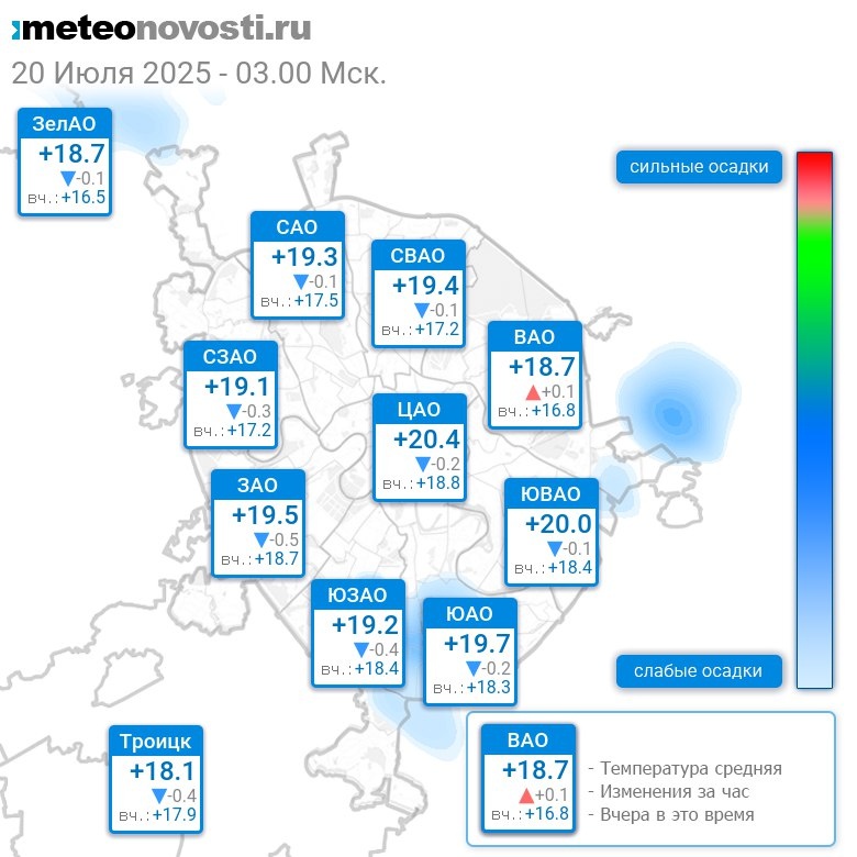 В 3:00 в Москве было от +17.6°C до +20.7°C, средняя температура +19.3°C #погода #Москва #лето #температура #20июля #воскресенье