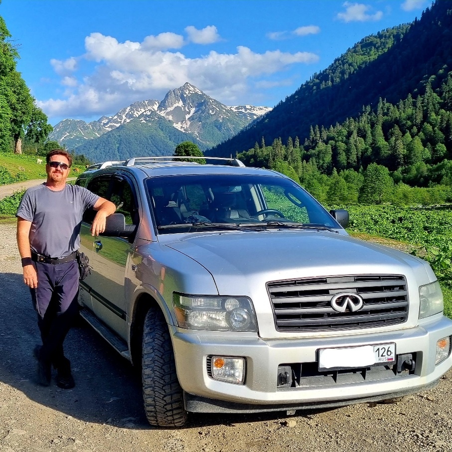 Мой верный спутник в этих странствиях — Infiniti QX56, чей бархатный рык знаком каждому горному серпантину, который, кажется, знает дороги Абхазии лучше, чем я сам. Он — мой верный конь в этих бесконечных путешествиях от моря к горам и обратно.
