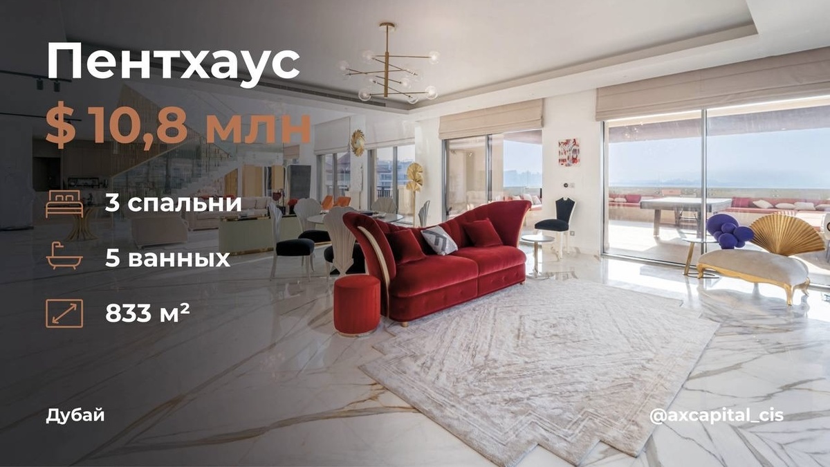 📍Восточный полумесяц Palm Jumeirah Двухэтажная резиденция в курортном комплексе The Royal Amwaj Residences. 5* сервис и доступ к частному пляжу. Роскошный дизайн интерьера, потолки двойной высоты и элегантная лестница. Балконы с видами на море, отель-парус Burj Al Arab и Atlantis The Royal. Просторная озелененная терраса с частным бассейном и зонами отдыха. ✓ 833 м², 3 спальни ✓ Открытая кухня ✓ Бытовая техника ✓ Гардеробные ✓ Бильярдная ✓ Центральный кондиционер ✓ Комната домашнего персонала ➡️ Сервисный сбор: $77 за м² в год Для жителей: ▫️бассейны ▫️фитнес-центр ▫️SPA-комплекс ▫️детские площадки ▫️рестораны и бары ▫️ландшафтные сады Подробности и запись на просмотр ➤ +971521232484 (English) AX CAPITAL – ваше агентство недвижимости в Дубае. #дубай #amwaj #dubai #axcapital #pool #бассейн #бильярд #пентхаус #penthouse #недвижимость #palmjumeirah #burjalarab