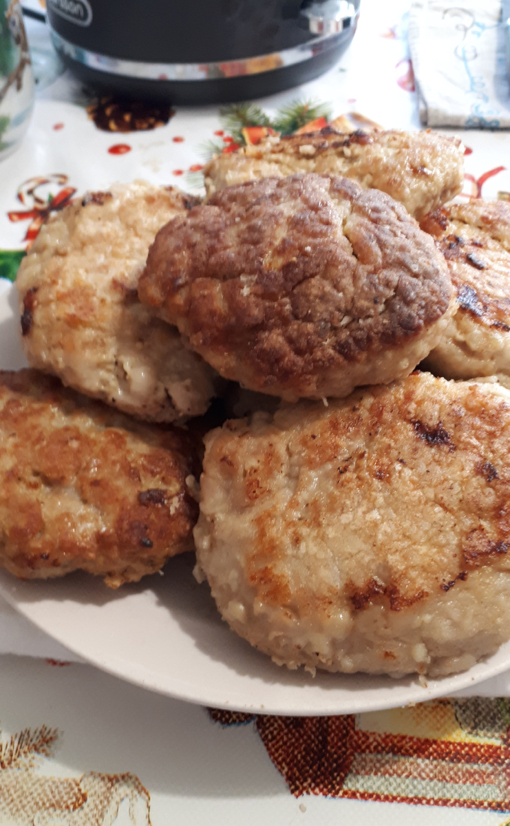Вот такие вот я жарю котлеты . Огромные , я и зову их мясными лепешками . Мяса там не так много . Рецепт . В граммах-килограммах не измеряю , моя мера такая - половина от общей массы мясо какое есть , другая половина - все что хотите . Ну вот так они выглядят . Мягкие , брать немного сложно , но мы , женщины , сделаем все в лучшем виде , не привыкать . У меня здесь - 3 немаленьких луковицы в хлам перемолотые , кабачок ( не отжимаю ) , 2 яйца , геркулес молотый , специи . Вот так и делаю - сколько намешаю овощей и прочего , столько же и мяса . Можно капусту , картошку , грибы , зелень любую . Все это мелко измельчить чем есть у вас , у меня измельчитель . Мясорубкой не пользуюсь , лень собирать - разбирать ее . Измельчителем очень удобно . У меня старенький Бош служит верой и правдой много лет , куплен когда еще не китайские были , а настоящие Боши . Вот только одно мне хотелось бы по другому - у меня один ряд ножей , а лучше бы два . Почему тогда купила такой , не знаю . Наверное