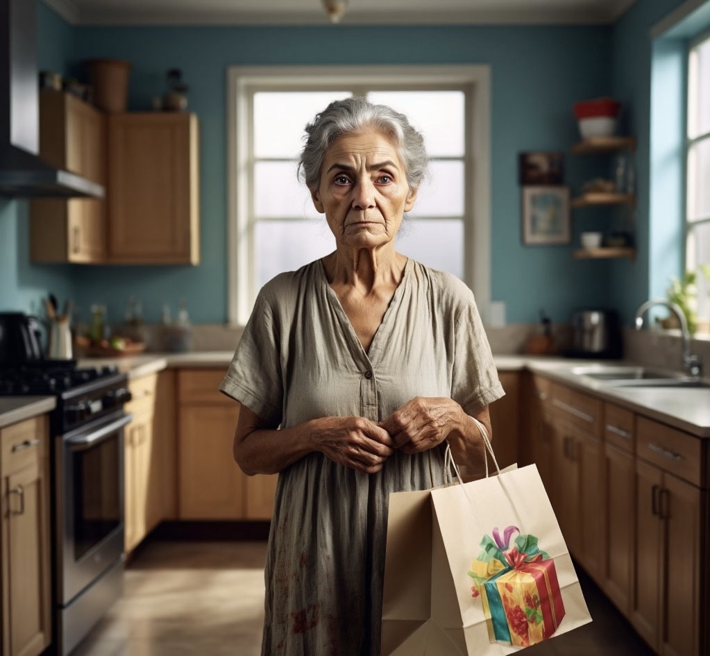 Сейчас она стояла посреди их новой кухни — уже не молодая, семьдесят два года, но все такая же несгибаемая. Седые волосы уложены в тугой пучок, спина прямая. В руках — авоська с гостинцами, которые никто не просил.