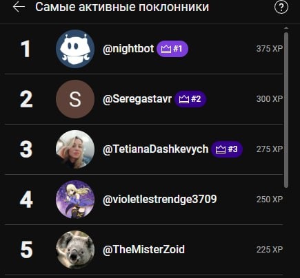 топ 5 стрима по активности в чате: