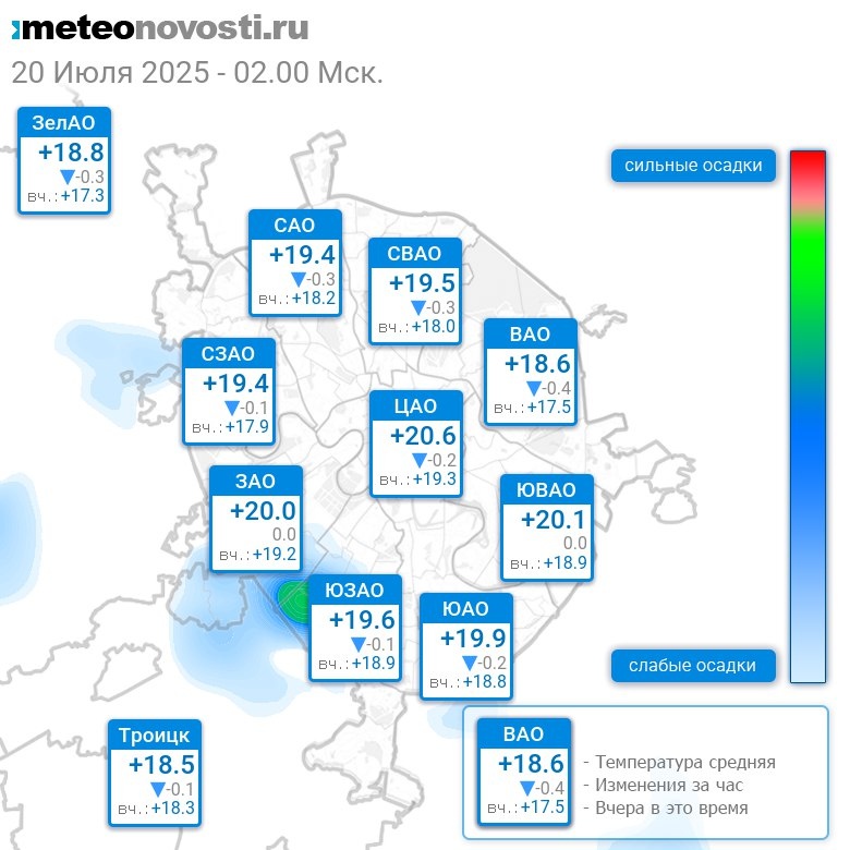 В 2:00 в Москве было от +17.6°C до +20.9°C, средняя температура +19.6°C #погода #Москва #лето #температура #20июля #воскресенье
