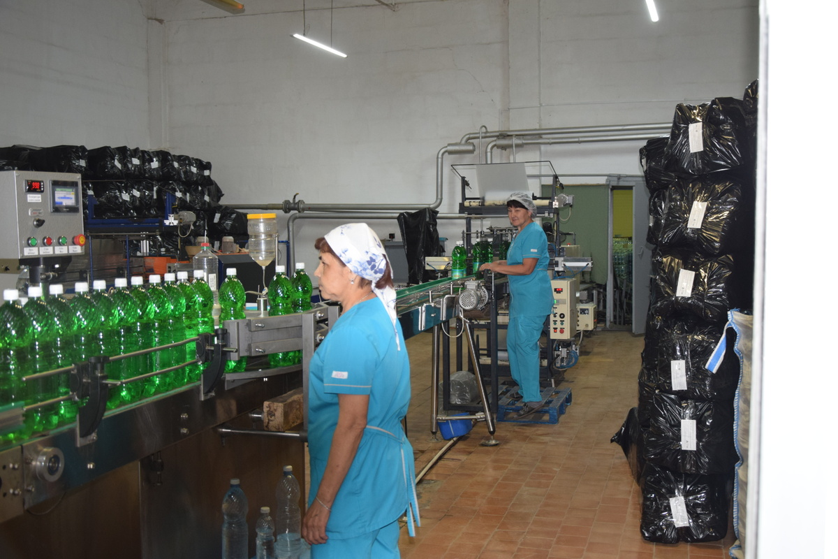 Под началом мастера цеха здесь трудится небольшая, но сплоченная команда - всего десять человек. На линии розлива работают три оператора, наладчик и сама Алёна Султанбаева. Вода разливается в бутылки 0,5 и 1,5 литра, а питьевая - ещё и в 5-литровые ёмкости.