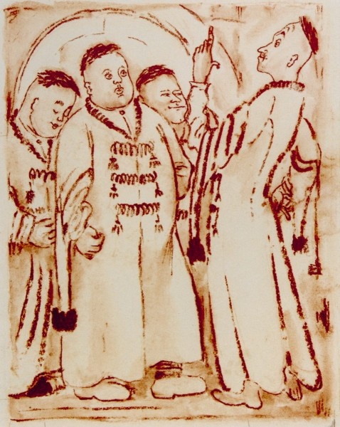 Пан полковник недомогает. Нет, запой уже отпустил. Серый стал лицом, как пергамент. Вроде, пользует «крокодил». Так по показаниям пленных, По набору разных примет Складывается постепенно В нашей базе его портрет. Под началом не много – сотня. Держит в ужасе, столь суров. Утром может мелькнуть в исподнем На дворе. Дразнит снайперов. Той ещё, кулацкой закваски. Из обиженных на судьбу. В жёлто-синий себя раскрасил. Так спешил, что сорвал резьбу. Кровью мирных густо замазан. Вам не ясно, чего мы ждём? Почему не прикончим разом? Там заложники. Детский дом. А. Н. Самохвалов Иллюстрация для книги Г. Квитка-Основьяненко «Пан Халявский» 1929 г. Государственный Русский Музей