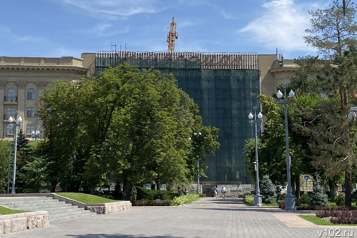 В Волгограде новое витражное остекление ЦУМа спрятали за лесами