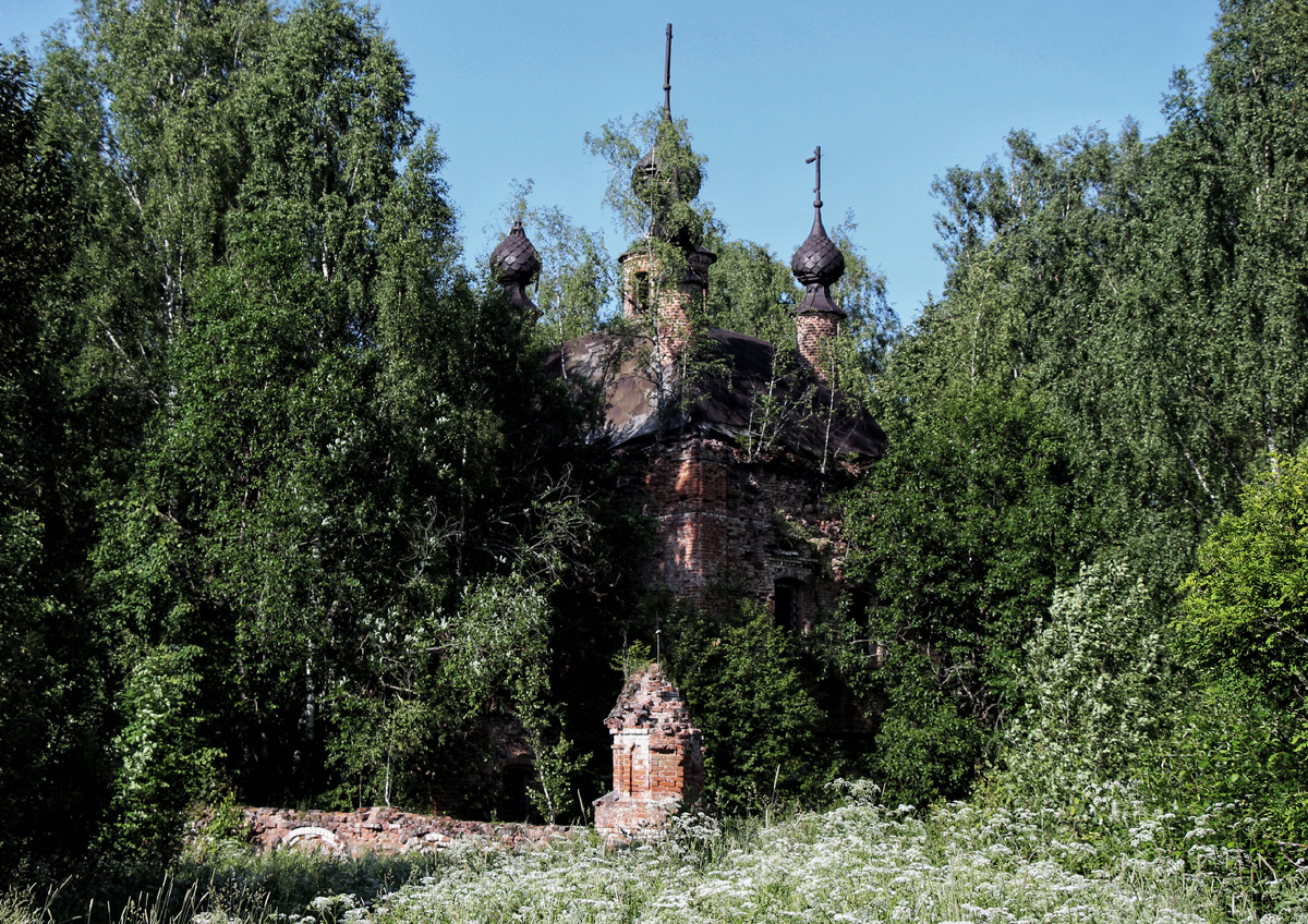 В каждом путешествии присутствует локация, которая по итогу выделятся из общей массы увиденного. В той «Галичской» экспедиции с огромным отрывом вперед уходит храмовый комплекс в Тушебино. Если до точки 58.448446 42.584567 еще можно проехать, то сразу за ней начинается Полная Чухлома) И это не шутки! Следующие 1,6 км дорога была… незабываемой. И это мне напомнило однажды прочитанное, позвольте, я с вами поделюсь. «…Большие дороги Костромской губернии обсажены широкими аллеями из старых ветвистых берез. Эти бесконечные аллеи тянутся почти непрерывно, в летнюю пору они служат защитою для пешеходов, но для проезжающих совершенно бесполезны и занимают много места. Явно, что земля ни во что не ценилась в то время, когда проводились почтовые тракты. Зимой по аллеям набиваются суметы снега, а в осеннюю ненастную погоду дождевая вода держится между деревьями и всасывается в почву, местами песчаную, местами глинистую и суглинистую. Дорога, разумеется, нигде не укатана, не усыпана щеп