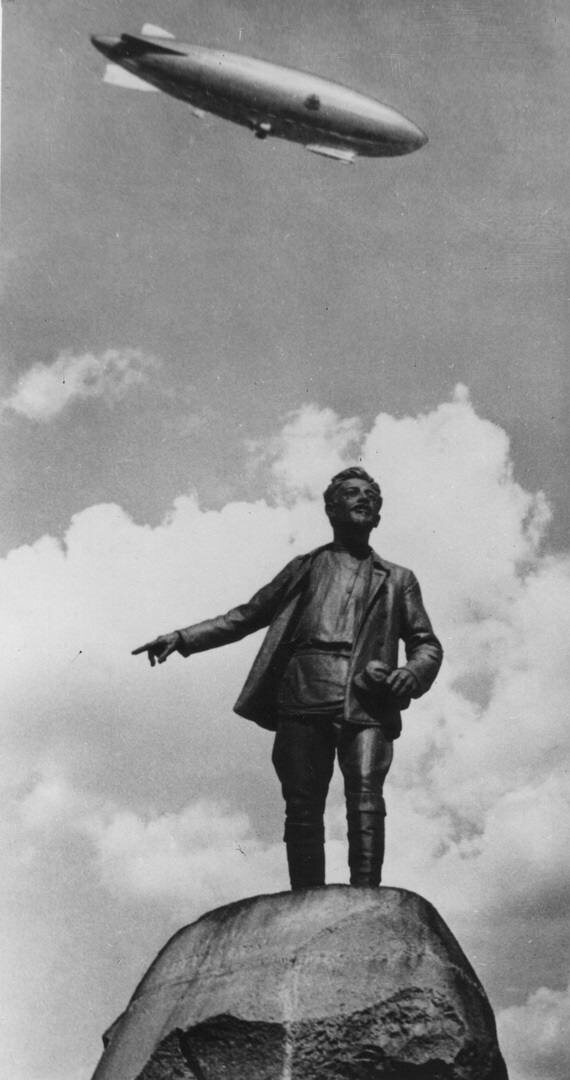 СССР-В6 — дирижабль, проходящий над городом во время испытательного полета по маршруту Москва—Свердловск, который состоялся 9 сентября 1937 года. Фото: Анатолий Скобелин