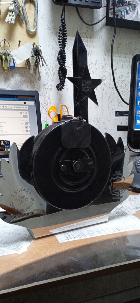 Капсула выполнена из магазина автомата ППШ. Совместный проект Музей мотоциклов "МотоЭпоха" г.Челябинск и Русские мотоциклисты Челябинск . Сбор состоялся у Спасо-Преображенского собора. В 12:30 выехали на мемориальный комплекс "МотоПарк Мира". Под Выборгом, на территории МО «Советского городского поселения», у п. Свердлово, в 200 метрах западнее памятного знака «На рубеже обороны», в 4 км юго-восточнее от памятного знака «Воинам 43-й дивизии», у гранитного валуна с вырубленным изображением солдата в каске, сжимающего кулак. Барельеф посвящен боям 24 - 31августа 1941 г, когда части 23-й армии попали в окружение, названное «Выборгской трагедией» или «Котлом у Порлампи». Общее количество сражавшихся военнослужащих – около 78 тыс. человек. В районе 7 тыс. солдат и офицеров 43-й стрелковой дивизии погибли, до 9 тыс. попали в плен. Барельеф был изготовлен в 90-е годы скульптором-мотоциклистом Юрием Пасхиным в честь его отца – замполитрука 43-й дивизии Василия Пасхина, погибшего у этого