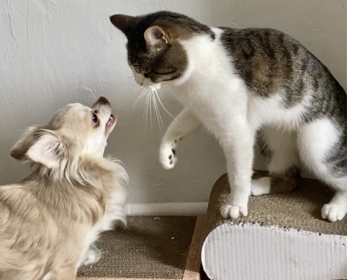 9 веселых и забавных кадров с котами и собаками, которые почти подружились. Часть 2