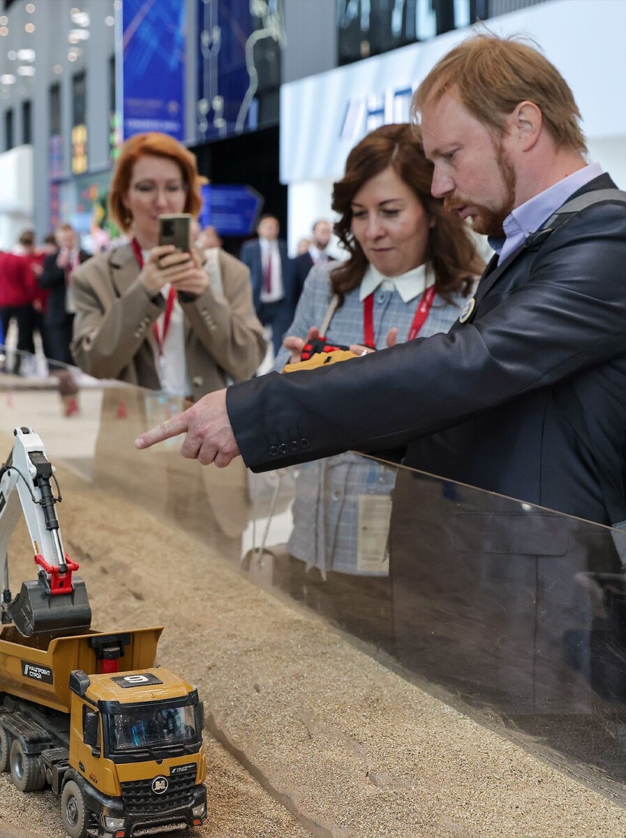 Форум всё ещё про цифры, графики и макроэкономику, но в этот раз к ней, например, прилагается и мини-экскаватор. В одной из зон взрослые дядьки в дорогих костюмах с азартом катали радиоуправляемые самосвалы, пересыпали песок и попутно спорили о логистике будущего. Гигантская песочница привлекла не меньше внимания, чем панель о развитии логистических хабов – возможно, потому, что в песочнице не обсуждали ситуацию с ключевой ставкой.
