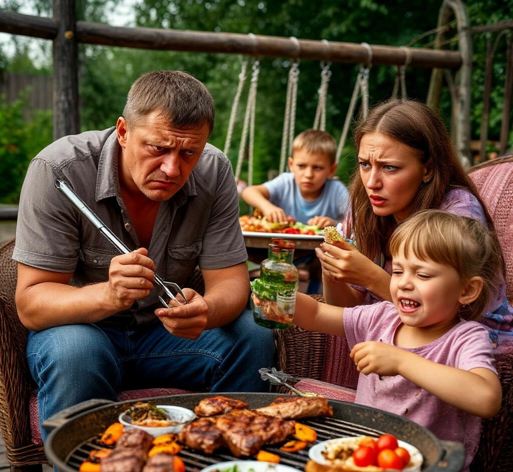 Утро начиналось слишком хорошо, чтобы всё пошло по плану. Ирина аккуратно раскладывала маринованное мясо на тарелке, поправляя прядь волос, выбившуюся из-под косынки. Солнце ласково грело спину, а запах специй обещал отличный шашлык.