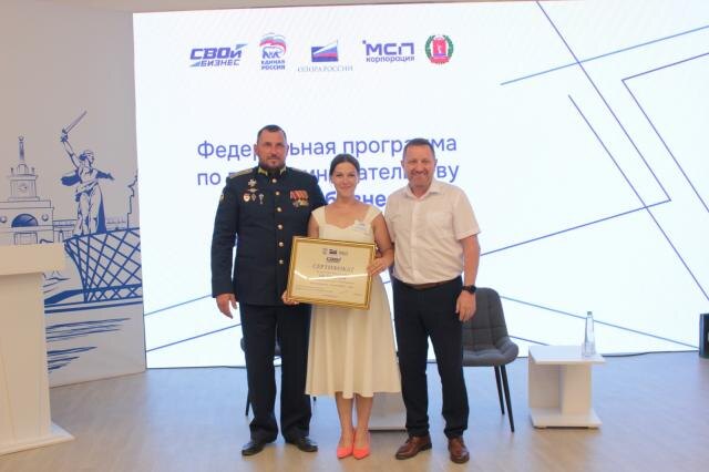 Волгоградка Бэлла Меньшикова, многодетная мать и супруга участника специальной военной операции стала победительницей конкурса, организованного в рамках федеральной программы «СВОй бизнес». Она получила сертификат на 100 тысяч рублей, которые планирует потратить на приобретение дополнительного оборудования для собственной студии джампинга и расширить бизнес, открыв детское направление по прыжкам. В Волгоградской области прошел пятидневный интенсив федеральной программы «СВОй бизнес». В мероприятии приняли участие 34 человека, которые изучили основы предпринимательства и представили свои бизнес-проекты. Среди представленных идей были: производство кондитерских изделий, массажные кабинеты, патриотическое воспитание, пошив одежды, в том числе для военнослужащих, а также обучение управлению беспилотными летательными аппаратами. Как отметил заместитель председателя комитета экономической политики и развития Волгоградской области Евгений Усков, программа «СВОй бизнес» направлена на предо