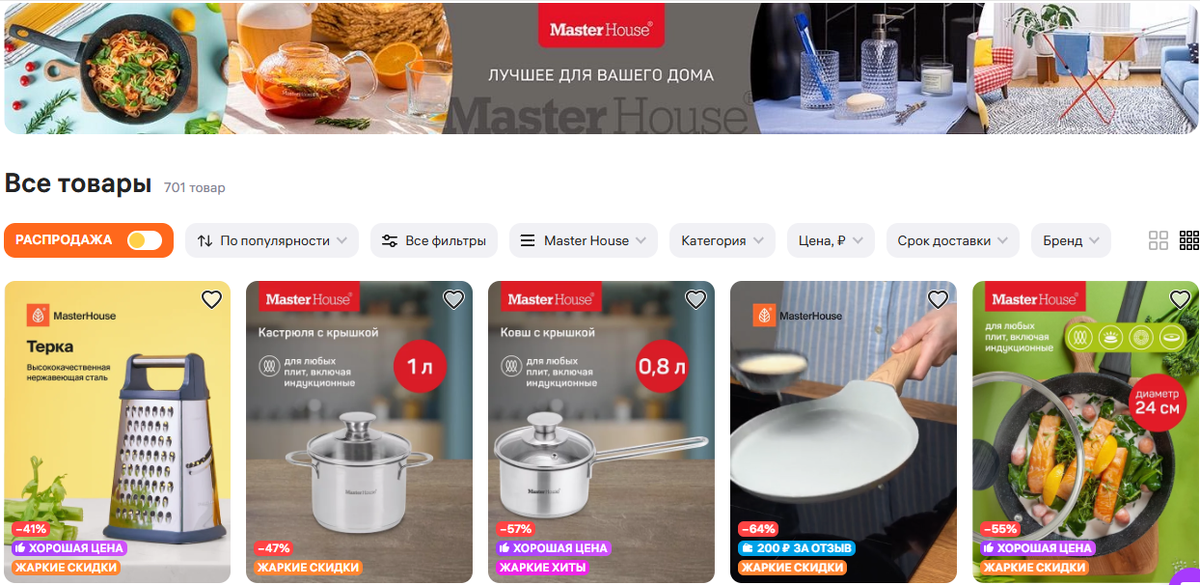 На днях я заказывала на WB подарки для сестры и кое-что из посуды себе, наткнулась на страницу магазина Master House (компания с 2015 года продает посуду, хозтовары, аксессуары для ванной и многое другое).