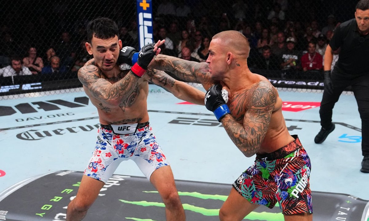 Сегодня утром по казахстанскому времени состоялся топовый бой в легком весе UFC, в котором сошлись звездные американские файтеры — Макс Холлоуэй (27-8) и Дастин Порье (30-10), сообщает Sports.kz. Холлоуэй и Порье мощно зарубились за титул в главном бою UFC 318. Видео Их поединок стал главным событием турнира UFC 318 в Новом Орлеане (США, штат Луизиана) и был запланирован на пять раундов. На кону стоял пояс BMF. В итоге долгожданная трилогия продлилась всю дистанцию, а победу единогласным решением судей (48-47, 49-46, 49-46) отпраздновал Холлоуэй. Видео полного боя представлено ниже. Напомним, что Порье и Холлоуэй провели уже два поединка, оба выиграл Дастин. В 2012 году Порье победил удушением в первом же раунде, а в 2019 году — единогласным решением судей. Макс Холлоуэй