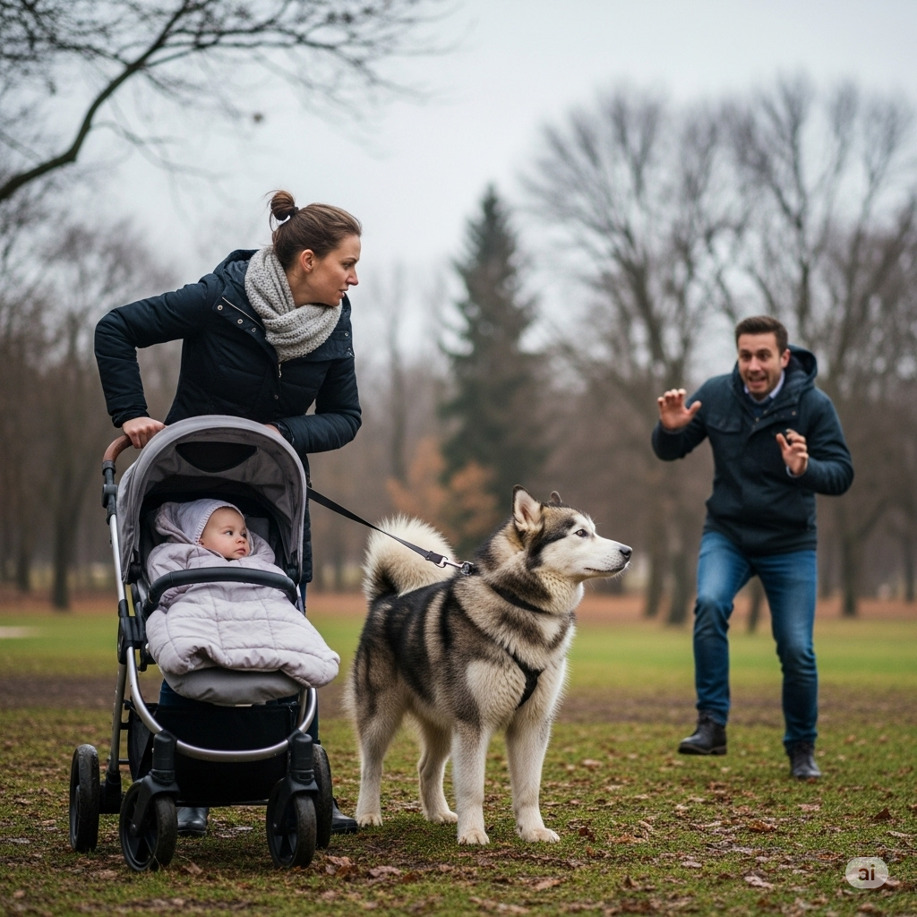 В этом мире Айла всегда на поводке. Это мое осознанное решение. Когда Мишка спит в коляске, я не могу кричать ей команды через всю поляну. Мне нужна тишина. Поводок – это мой пульт дистанционного управления, мой гарант спокойствия. Айла идет рядом, ее нос упирается в колесо коляски. Она не тянет, не рвется. Она понимает свою задачу. Она – все тот же северный дух, только теперь привязанный ко мне двухметровой нейлоновой лентой.