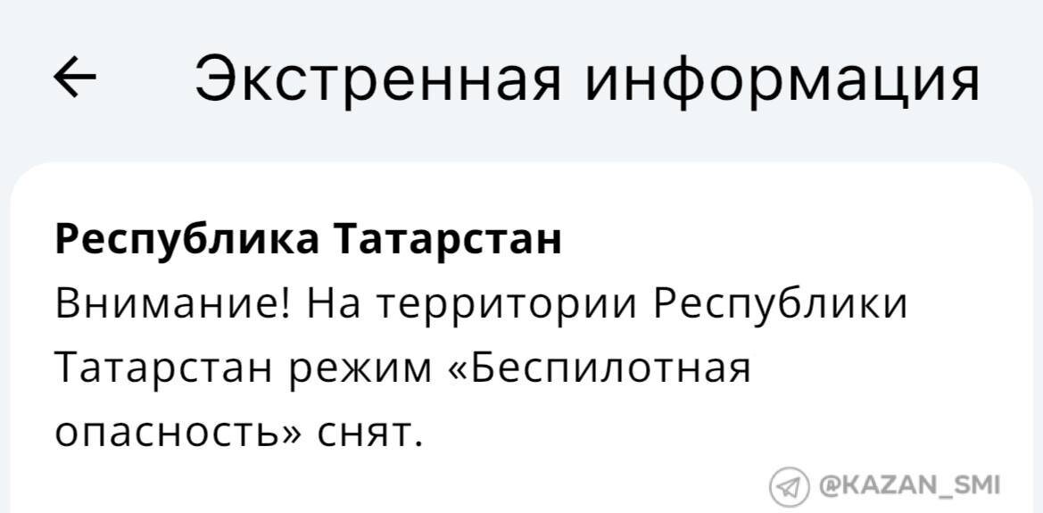 🚨 Режим «Беспилотная опасность» снят в Татарстане