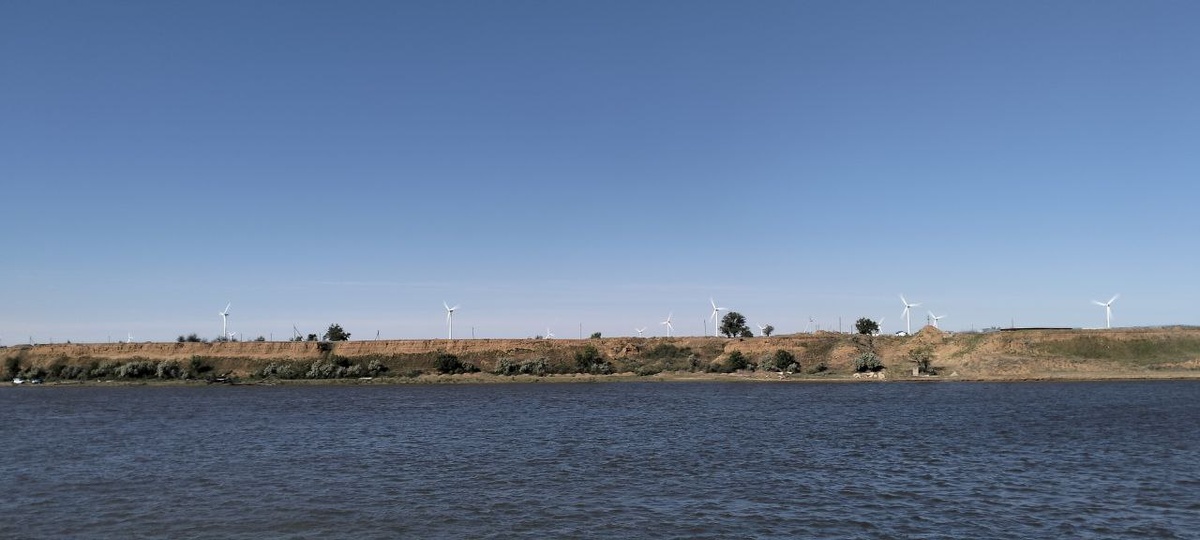 Привет из района Чёрного Яра астраханской области. Ветряки радостно машут с берега проходящим мимо судам 🌬🌊