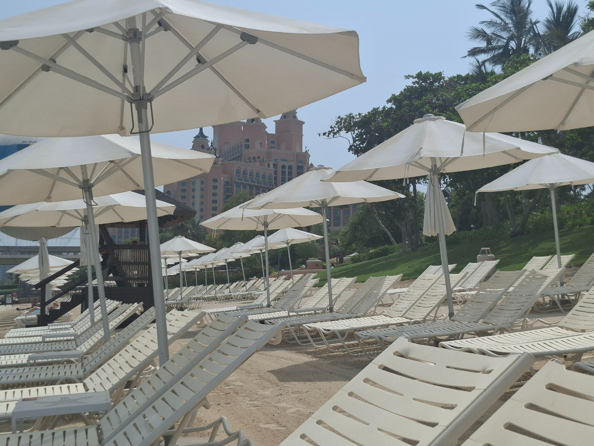 Что касается именно пляжа аквапарка Atlantis Aquaventure, то я сначала не поняла, что за странное ощущение, когда идешь по песку, обычно он нереально мягкий, без мусоринки, а тут я шла и чувствовала что-то еще под ногами.