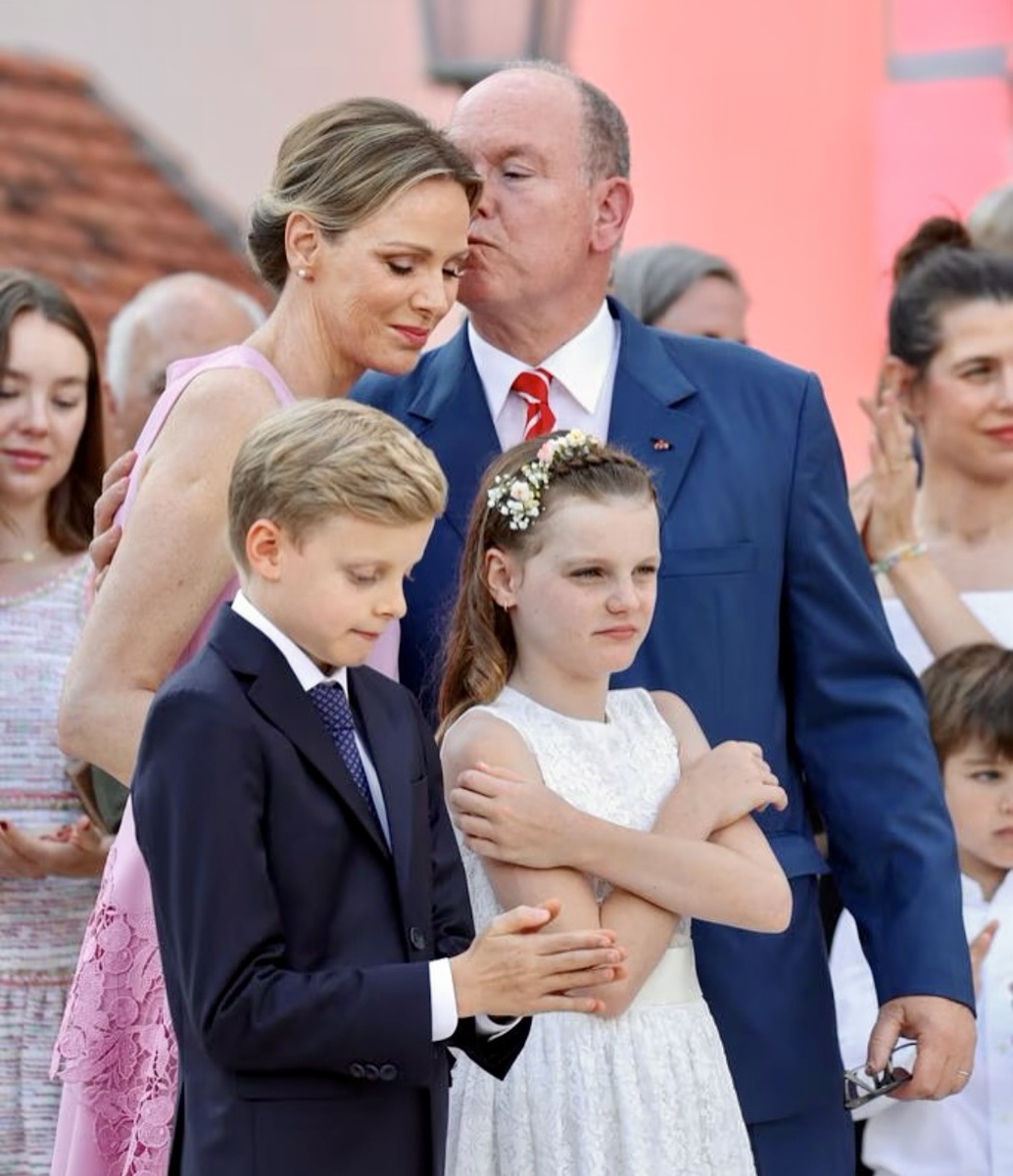 Собственно, в княжестве что ни день, то бал или фестиваль. Но накануне правитель Монако Альбер Второй с семейством и подданными отмечал 20-летие своего правления. Сын Грейс Келли и Ренье Третьего устроил праздик в красно-белых цветах своей маленькой страны. Гигантский торт в виде замка мне лично напомнил собор Василия Блаженного своей затейливостью. Вкусные детали влекли младшее поколение Гримальди. Первым взял вкусный шар наследник трона Жак. Затем Габриэль. Торт состоял из тысяч глазированных шоколадом красного и белого цвета печенек с начинкой. Так как у нас будет обзор нарядов, то давайте по старшинству и протоколу. Жена Альбера, Шарлен, выбрала нежно-розовое платье из коллекции Оскара де ла Ренты. Туфельки с открытым задником от G.Rossi. Цветы и листья в технике Ришелье очень хороши. Вещи из этой линии носит и Великая герцогиня Люксембурга Мария-Тереза. Мне лично показалось , что Шарлен несколько не угадала с длиной. Хотя платье делали для нее специально на заказ, убрав вста