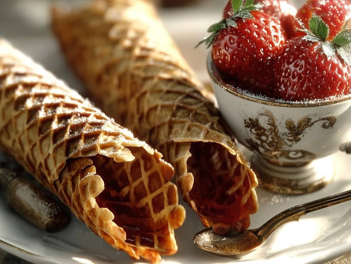 Важно: сворачиваем вафли в трубочки, пока они горячие — потом уже не получится.