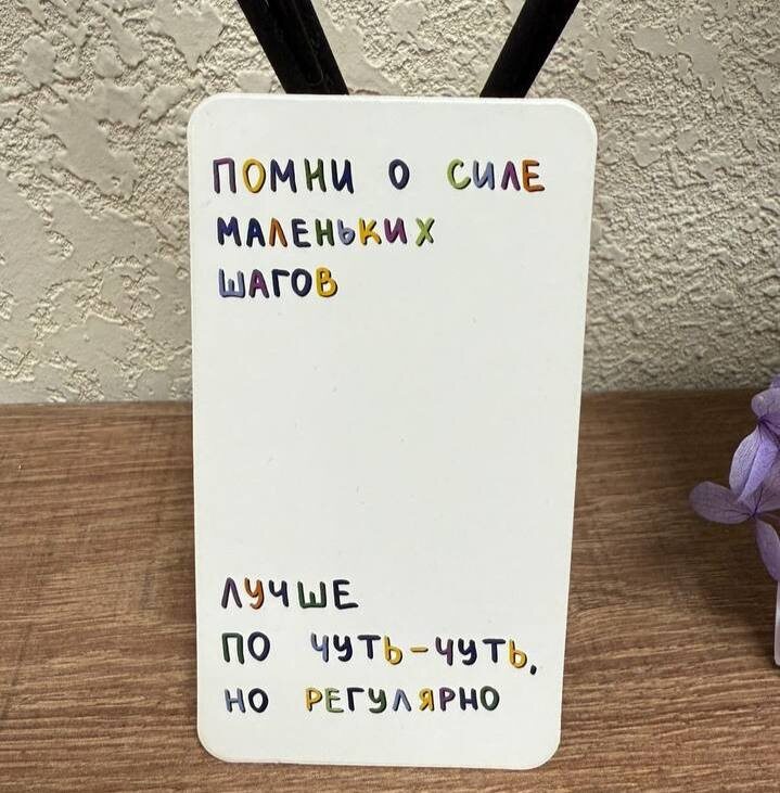 Я коллекционирую всякие карточки, и вот недавно попалась такая… Я когда её вытянула просто офигела, насколько карточка попала в мою философию…я правда считаю, что путь к успеху - это совокупность маленьких регулярных шагов👍🏻 И именно на этом принципе я построила свой клуб ленивых тренировок 😊 понемногу, по чуть-чуть, но каждый день, каждый день приближая себя к красивому и здоровому телу. И знаете, по-другому не получится, не получится занимаясь 2 раза в неделю быть здоровым, не получится, участвуя в марафонах и насилуя своё тело иметь долговременный результат🙌🏻 Как же я хочу, чтобы каждый человек это понял. Что не нужно работать в зале до изнеможения, что не нужно терпеть и делать! А нужно просто начать хотя бы с: 📌дыхания перед сном 📌перекладывания сумку на другое плечо 📌более частого обращения внимания на своё тело 📌перерывов в работе за компьютером 📌трехминутной зарядки в течении дня Да, это совсем немного! Но с чего-то надо начинать😊просто потом, начав с мелочей, вы