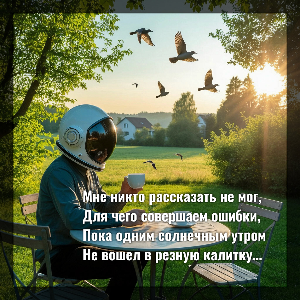 Мне никто рассказать не мог, Для чего совершаем ошибки, Пока одним солнечным утром Не вошел в резную калитку Небольшой совсем старичок, Рад был встретить меня случайно, Сколько он обошел деревень, Не настроен никто был буквально Общаться, в ответ улыбнуться, А тут всё сошлось воедино, В голове моей зрели вопросы, А ответы прошли почти мимо. Чай, печенье, слово за слово, И в рассказе его я пропал, Я будто не чувствовал землю И с ним вместе где-то летал, Он показывал мне частицы, Из которых Земля состояла, Он показывал разные Души, Которым здесь жизни мало, Показал, сколько разных уроков Проходим, встречая тупик, Как растём, напрягая голову, Как не слышим Души крик, Как любовь помогает справиться, Как прощение нас облегчает, Он буквально мне выдал всё, О чём человек мечтает Знать, когда здесь растёт, Просыпается от забвения, Я не понял, кто он такой, Не похож вроде был на гения, Но свечение шло из глаз, Он подмигивал мне тихонько, Будто так я проснусь быстрее, По плечу он ударил легоньк