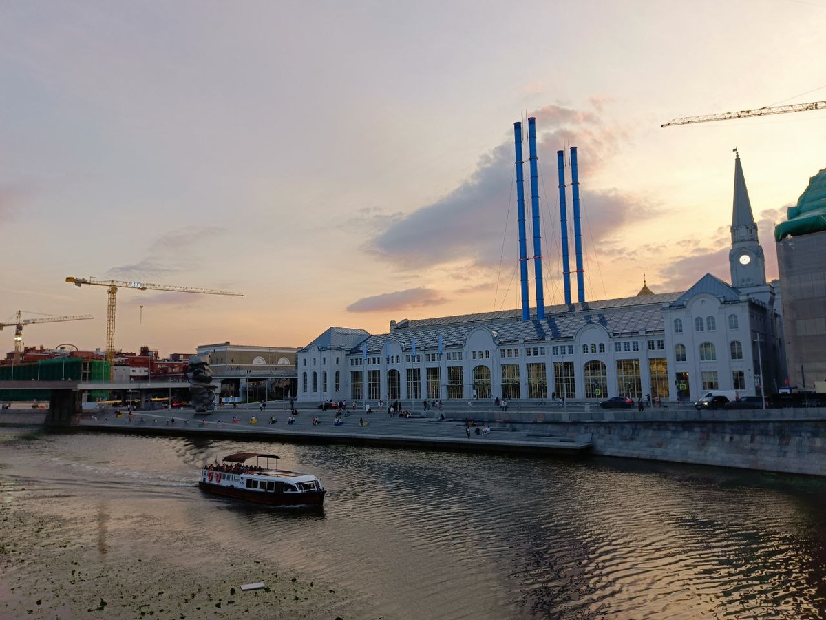 #лето Закатная ГЭС-2. Кстати, расшифровка этой аббревиатуры - городская электростанция. Внутри, как и всегда, ажурно и светло. В центральной части инсталляция из раскрашенных стволов деревьев, а позади - как и всегда - лужайка и березы в зарослях лопухов. Интересно, что эта рощица мне кажется гораздо более искусственной и чужеродной, чем стриженные берёзы в "Зарядье". Может быть, по той причине, что обычно под берёзами лопухи не растут? Или из-за того, что островок с деревьями плотно зажат цивилизацией? Сложно ответить однозначно, но ощущение искусственности у меня там каждый раз возникает. #рыжаяженщина
