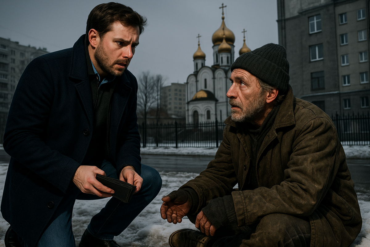 Мимо прошла женщина, бросила в стаканчик мелочь. Бездомный поднял голову, улыбнулся — беззубо, но искренне. Женщина даже не заметила, пошла дальше. А мужчина аккуратно достал монеты, сложил и спрятал в карман.