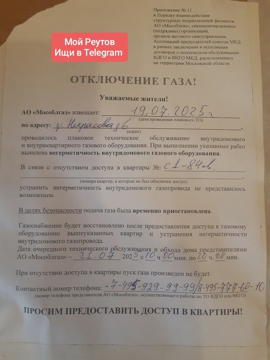 π£ΠΠ΅ΠΊΡΠ°ΡΠΎΠ²Π° 6. ΠΠ° ΠΊΠ°ΠΊΠΎΠΌ ΠΎΡΠ½ΠΎΠ²Π°Π½ΠΈΠΈ/ΠΏΠΎΡΡΠ°Π½ΠΎΠ²Π»Π΅Π½ΠΈΠΈ Π²ΡΠΊΠ»ΡΡΠΈΠ»ΠΈ Π³Π°Π· Π²ΠΎ Π²ΡΡΠΌ Π΄ΠΎΠΌΠ΅? Π£Π²Π΅Π΄ΠΎΠΌΠΈΡΡ Π΄ΠΎΠ»ΠΆΠ½Ρ ΠΊΠ°ΠΊ ΠΌΠΈΠ½ΠΈΠΌΡΠΌ Π·Π° 10 Π΄Π½Π΅ΠΉ. Π ΠΎΠ±ΡΡΠ²Π»Π΅Π½ΠΈΠΈ Π½Π°ΠΏΠΈΡΠ°Π½ΠΎ "Π½Π΅Π΄ΠΎΠΏΡΡΠΊ Π² ΠΊΠ² #1-84" - ΠΈΠΌ Π½ΠΈ ΠΎΠ΄Π½Π° ΠΊΠ²Π°ΡΡΠΈΡΠ° Π½Π΅ ΠΎΡΠΊΡΡΠ»Π°? Π’Π°ΠΊΠΆΠ΅ ΡΠΊΠ°Π·Π°Π½ΠΎ "ΠΡΠΈ ΠΎΡΡΡΡΡΡΠ²ΠΈΠΈ Π΄ΠΎΡΡΡΠΏΠ° Π² ΠΊΠ²Π°ΡΡΠΈΡΡ ΠΏΡΡΠΊ Π³Π°Π·Π° ΠΏΡΠΎΠΈΠ·Π²Π΅Π΄Π΅Π½ Π½Π΅ Π±ΡΠ΄Π΅Ρ". ΠΡΠΎ Ρ ΡΠ΅Π³ΠΎ ΡΡΠΎ? ΠΠ½ΠΎΠ³ΠΈΠ΅ Π² ΠΎΡΠΏΡΡΠΊΠ°Ρ