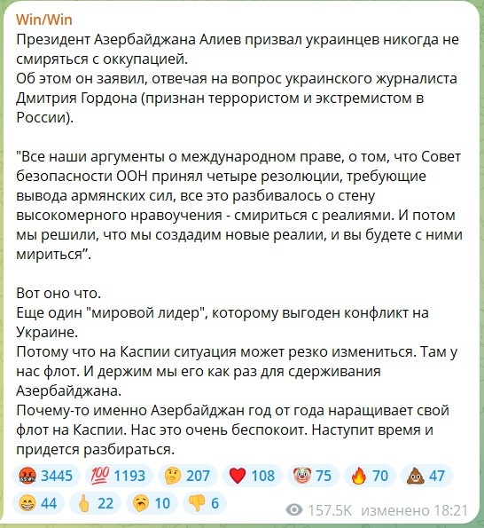 - Распоряжением МИД РФ заморозить (запретить) на неопределённый срок все поездки граждан РФ в Азербайджан.