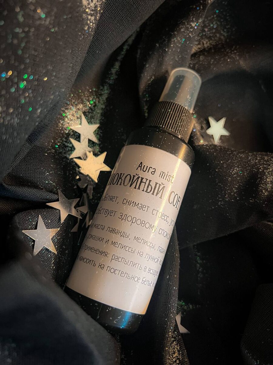 Аура мист «Спокойный сон» Аура мист – это удобный и волшебный спрей в флаконе с распылителем. Он содержит настой трав на лунной воде, а также эфирные масла и манифестацию намерения. Аура мист действует на физическом и тонком плане, помогая достигать поставленной задачи. «Спокойный сон» расслабляет, снимает стресс, успокаивает и способствует спокойному, здоровому сну. В составе «Спокойного сна»: 💦🌙настой ромашки и мелиссы на лунной воде 🌿🌸эфирные масла лаванды, мелиссы, ладана, ветивера и ванили Пользоваться аура мистом просто – распылите его в спальне или на постельное белье для спокойного, крепкого сна🛌😴 Объем 100 мл. Цена 1600 рублей.