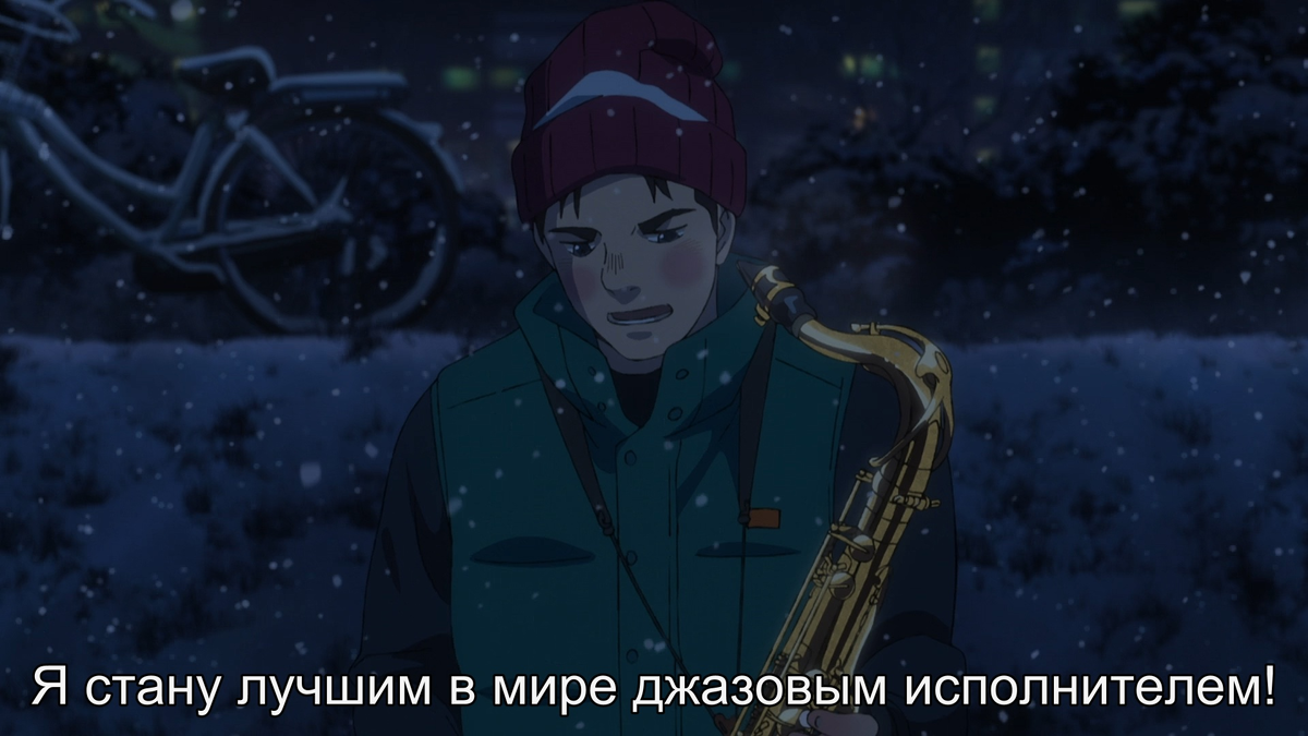 Джаз - редкий гость на просторах аниме - решил обрадовать поклонников полноценным фильмом. Фильм открывает нам всего лишь отрывок из жизни главного героя, Миямото Дай, но этого достаточно, чтобы заглянуть в насыщенный мир джазовой музыки. В любом деле невозможно достичь высот без колоссального упорства и постоянного труда, что соответственно и легло в основу жанра спокон, имя которого составлено из スポーツ (супо:цу - спорт) и 根性 (こんじょう- кондзё: - сила воли). Дай, как и полагает герою спокона, ставит перед собой огромную цель, и идёт шаг за шагом к ней. Да, будет тяжело, трудно, больно, будут неудачи, но он продолжит идти, ведь таков путь к номеру 1. Нам покажут его первые выступления в составе группы из трёх, когда он ещё никому неизвестен и делает первые шаги навстречу миру джаза. И пусть в фильме есть один клишированный момент, который я не люблю в тайтлах данного рода, ибо считаю, что хороший писатель может с легкостью его избежать, картина в целом оставляет приятное впечатление. Напос